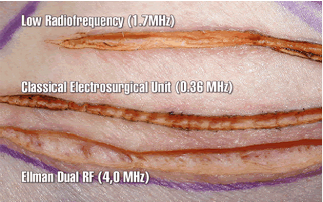 5、無炭化-射頻手術設備更小化燒傷組織,不像激光及傳統電外科設備。