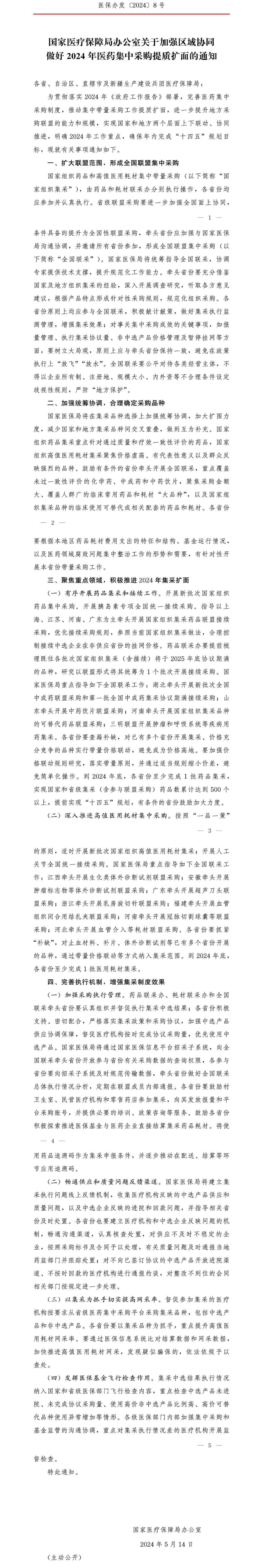 《通知》指出,聚焦重點領域,積極推進2024年集采擴面。