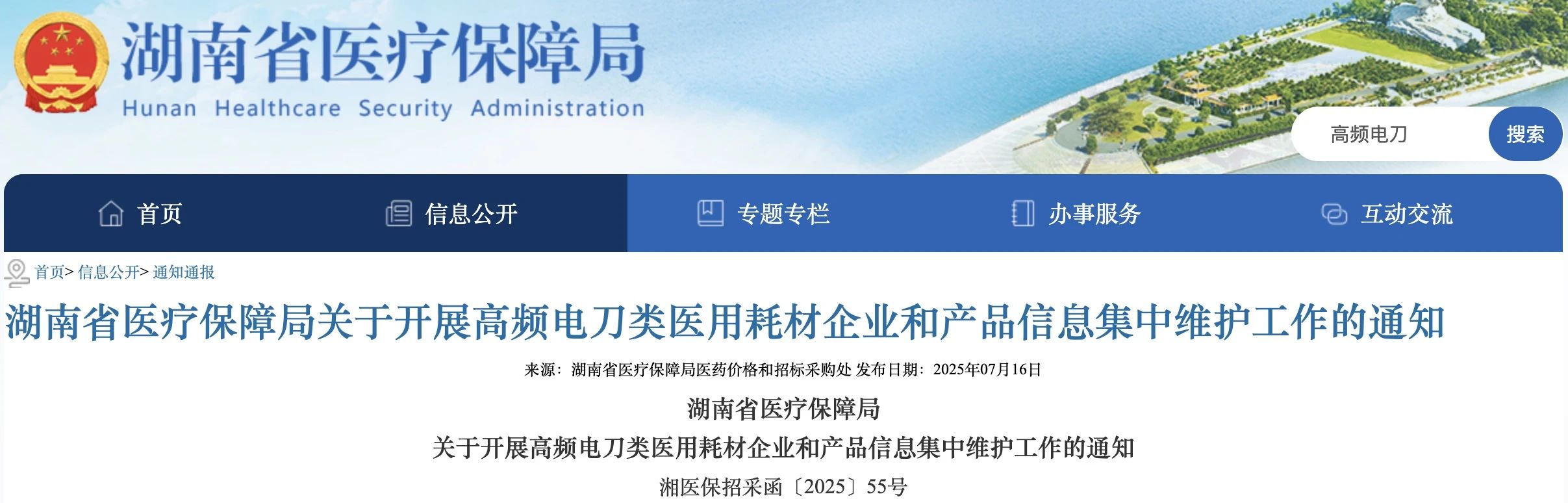 7月16日,湖南醫保局發布《關于開展高頻電刀類醫用耗材企業和產品信息集中維護工作的通知》(簡稱《通知》)。