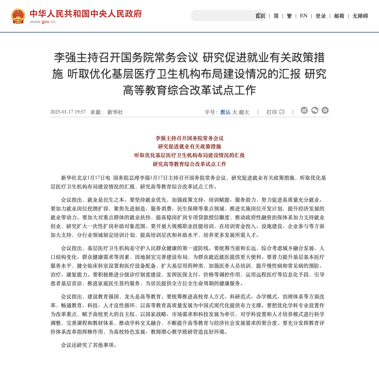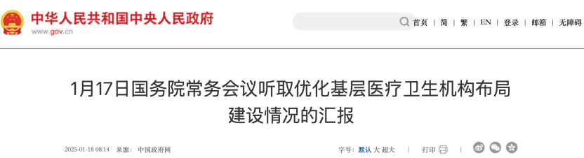1月17日,國務院常務會議聽取優(yōu)化基層醫(yī)療衛(wèi)生機構布局建設情況的匯報。