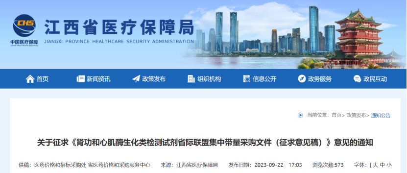 9月22日,江西省醫(yī)保局發(fā)布《關(guān)于征求<腎功和心肌酶生化類檢測(cè)試劑省際聯(lián)盟集中帶量采購(gòu)文件(征求意見稿)>意見的通知》。