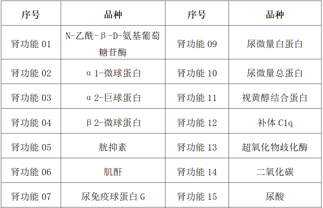 其中包括腎功16個(gè)和心肌酶13個(gè)共29個(gè)品種。