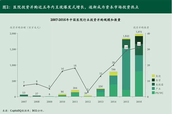BCG分析顯示,中國的醫(yī)院行業(yè)投資穩(wěn)定走高是從2013年開始。在此之前,醫(yī)院行業(yè)投資并購金額最高為2.04億美元,此后的2012年一度跌落至3900萬美元。