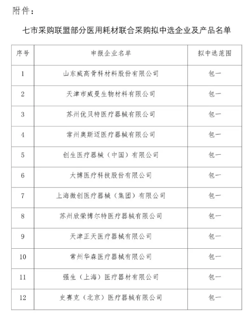 7市聯(lián)盟帶量采購結(jié)果:史賽克、強(qiáng)生、威高…