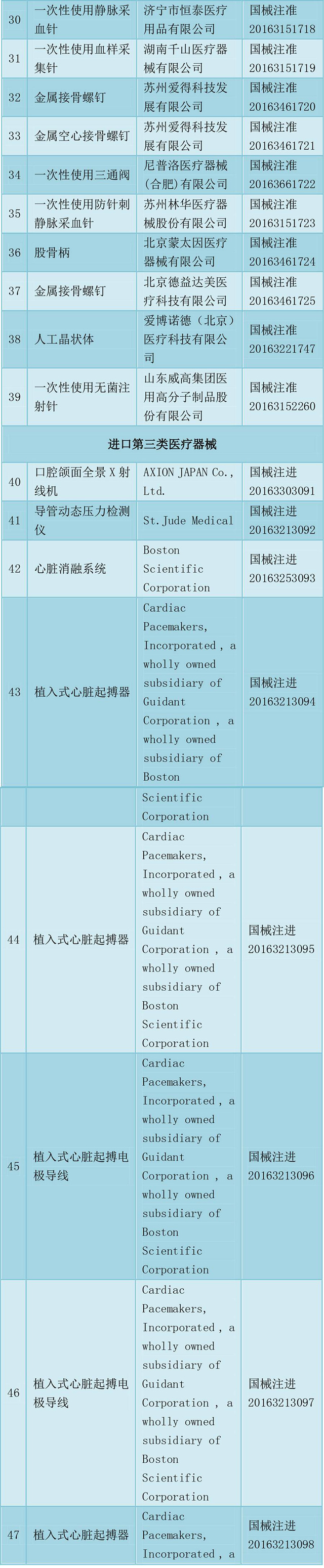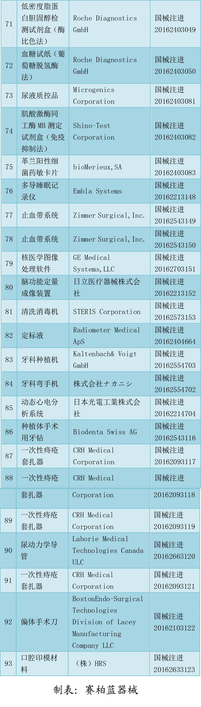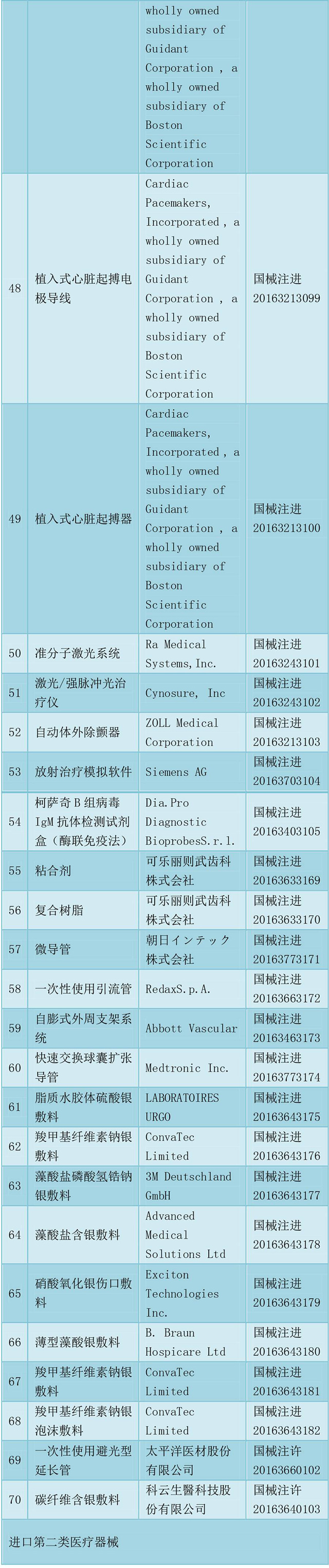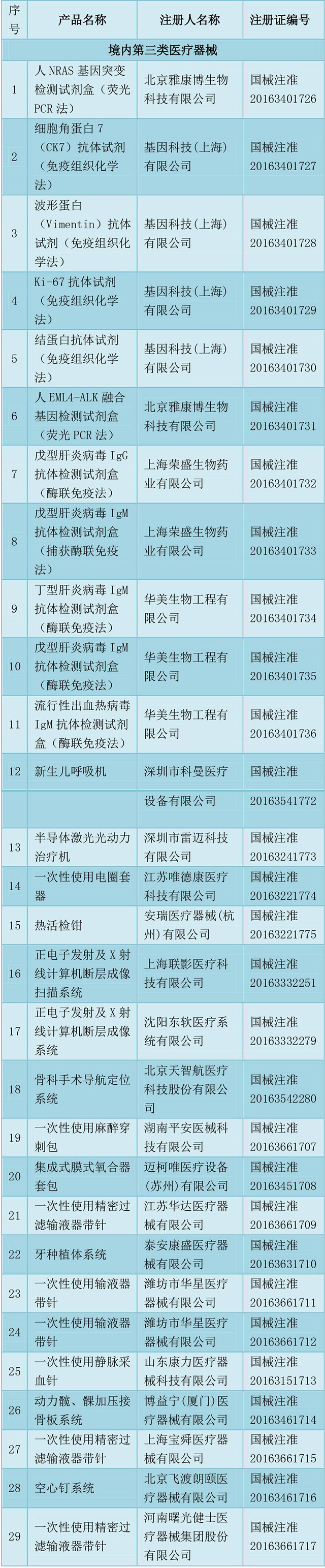 2016年11月批準(zhǔn)注冊(cè)醫(yī)療器械產(chǎn)品目錄