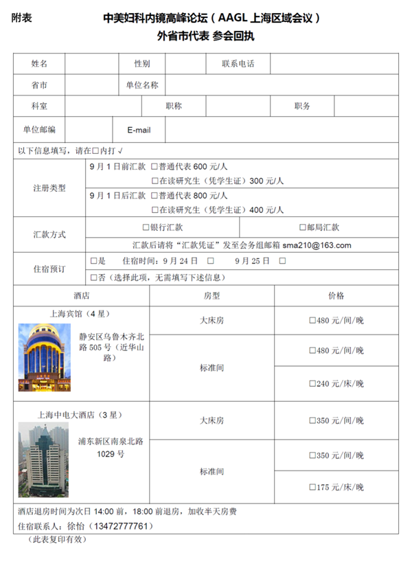 需要代為預訂住宿的代表請填寫“參會回執”(見附表),或登錄訂房網站http://www.opttrip.com/meeting/default.aspx
