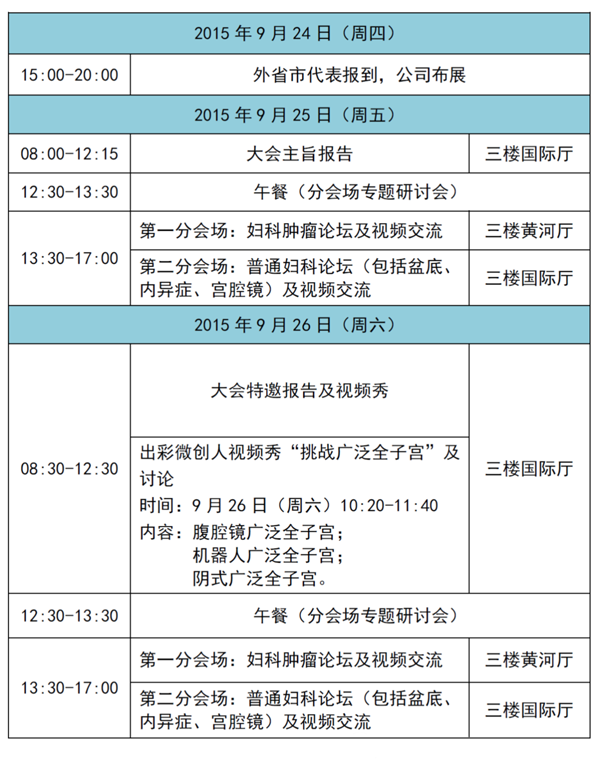 我們謹代表中美婦科內鏡高峰論壇組委會,誠摯地歡迎各位婦產科界同道參加2015年9月25-26日在上海國際會議中心召開的“中美婦科內鏡高峰論壇”(AAGL上海區域會議)!