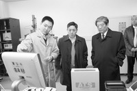 下圖為北京市醫(yī)療器械檢驗(yàn)所工作人員為國家食品藥品監(jiān)督管理局局長(zhǎng)邵明立(右)、北京市副市長(zhǎng)丁向陽進(jìn)行實(shí)驗(yàn)演示和解說。