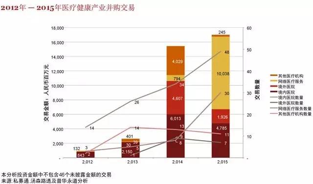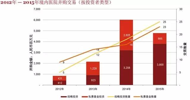 “連鎖專科醫院及連鎖高端綜合門診是2014年民營醫院并購的主要標的,亦是私募股權投資者投資關注的重點,但這類標的逐漸稀缺導致民營醫院和私募股權并購交易規模在2015年有較大下滑。”普華永道中國戰略咨詢部合伙人金軍分析道。