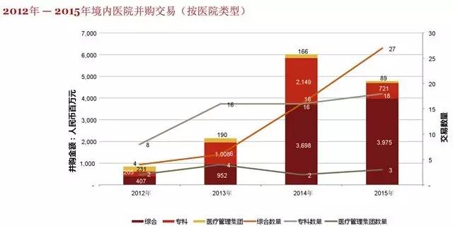 普華永道中國華北區企業并購服務部及醫療行業主管合伙人錢立強表示:“由于有望快速擴大規模并回收投資,醫療風險較小的連鎖型??漆t院,如口腔和婦幼醫院,最受投資者青睞。但近年來這類標的逐漸稀缺,2015年交易規模大幅下降。而具有一定規模、有穩定現金流并能利用投資提升業績的二、三級綜合醫院并購活動出現大幅增長。”