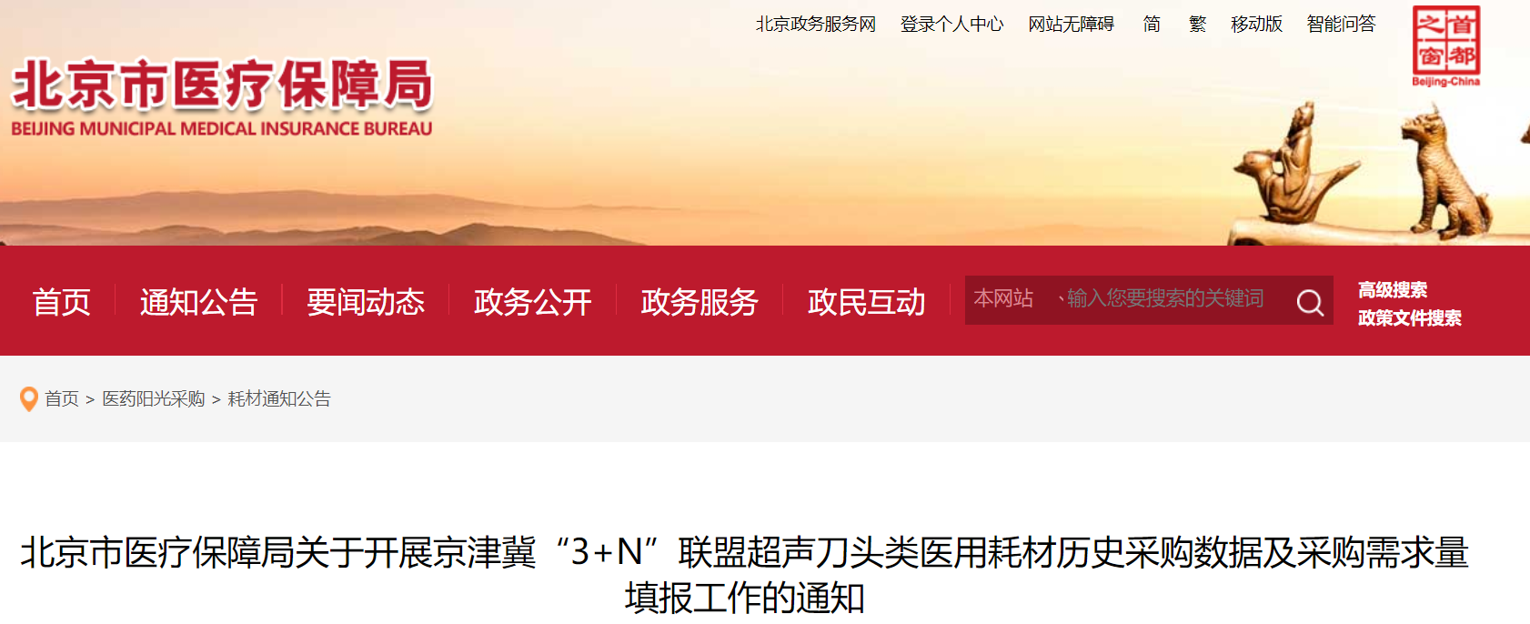 9月18日,北京醫保局發布《關于開展京津冀“3+N”聯盟超聲刀頭類醫用耗材歷史采購數據及采購需求量填報工作的通知》(簡稱《通知》)。