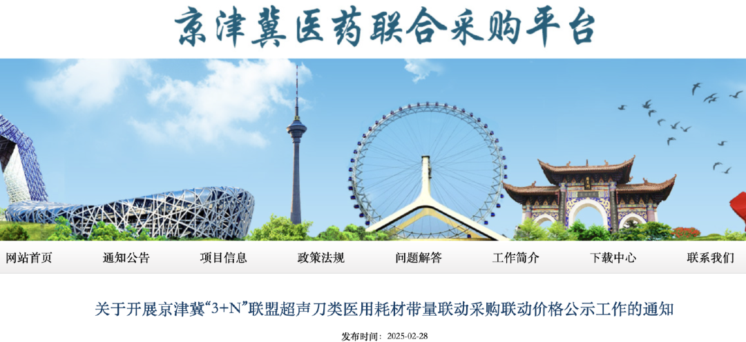 2月28日,京津冀醫藥聯合采購平臺發布《關于開展京津冀“3+N”聯盟超聲刀類醫用耗材帶量聯動采購聯動價格公示工作的通知》,開展超聲刀類醫用耗材聯動價格公示工作,聯動價格公示時間為2024年2月28日9時至3月4日17時。