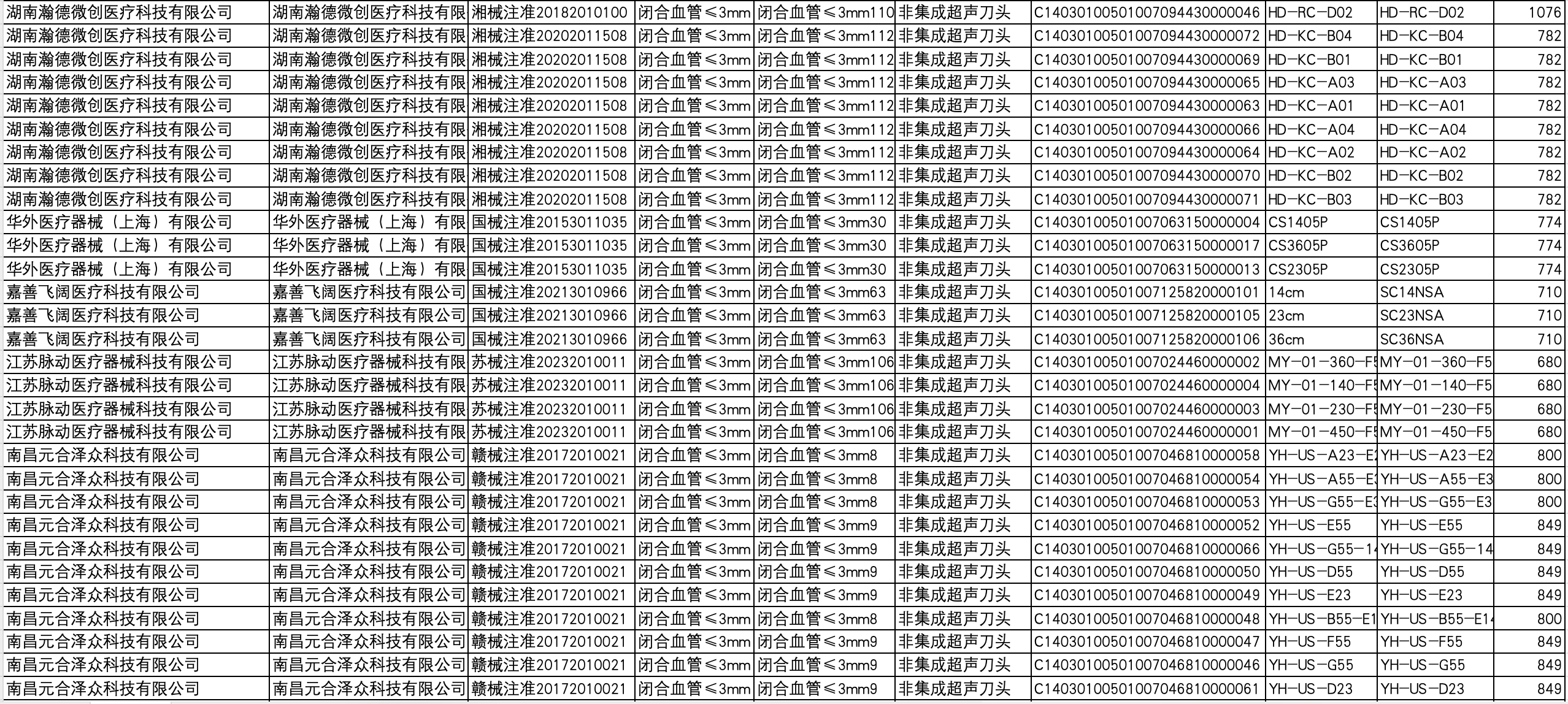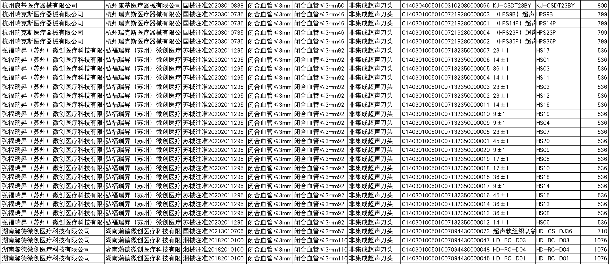 公示內容顯示,閉合血管≤3mm的超聲刀頭最低價已降至536元,閉合血管≤5mm/7mm的超聲刀頭最低價降至720元。