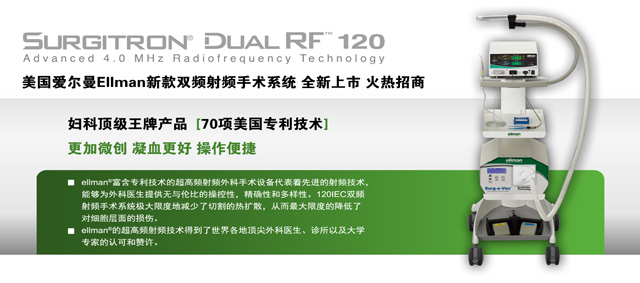 美國愛爾曼全新Ellman Surgitron Dual 120專注于婦科的應用,能夠在所有組織,包括薄壁組織,交融組織或者無張力組織中,像手術刀一樣操作進行無壓力切割,能夠?qū)崿F(xiàn)操作多樣化、精確化;攜帶方便、免維護。顯著優(yōu)勢:全數(shù)字射頻能量調(diào)節(jié)更加精準;全球最先進的雙射頻頻率輸出:4.0Mhz/1.7Mhz切割更加微創(chuàng),凝血效果更加強勁;使用多功能操作手柄操作更加方便讓醫(yī)生得心應手。