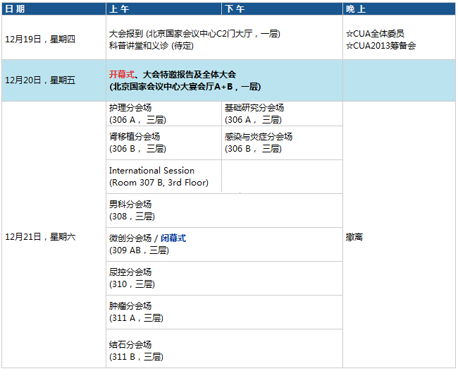 由中華醫(yī)學(xué)會、中華醫(yī)學(xué)會泌尿外科學(xué)分會主辦,北京醫(yī)學(xué)會承辦的第二十屆全國泌尿外科學(xué)術(shù)會議(CUA2013)將于2013年12月19~21日在北京市國家會議中心召開。去年年會,廣東省泌尿外科同道以熱情的精神風(fēng)貌、專業(yè)的工作表現(xiàn),全方位詮釋了“CUA粵精彩”這一主題。2013年,北京的同道將以“創(chuàng)新、國際化、兼容并蓄”的宏大視角,展示CUA 及其全國年會在新思想交匯、學(xué)術(shù)觀點(diǎn)爭鳴、技術(shù)成果展示、對外窗口作用與交流合作、人才培養(yǎng)、縮小地區(qū)間學(xué)科發(fā)展不平衡等各方面的巨大凝聚力及影響力——CUA 更精彩!一年一度的全國泌尿外科學(xué)術(shù)會議是CUA 的重點(diǎn)學(xué)術(shù)活動,也是展示我國泌尿外科領(lǐng)域最新研究成果、推動學(xué)科全面發(fā)展的一個重要平臺。