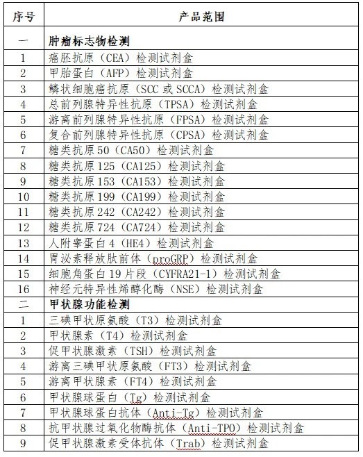 按照國家層面要求,體外診斷仍為今年集采重點,覆蓋品類和地區(qū)持續(xù)擴圍。近期由安徽牽頭的全國聯(lián)采也公布了產(chǎn)品范圍,腫瘤標(biāo)志物和甲狀腺功能被列入其中。