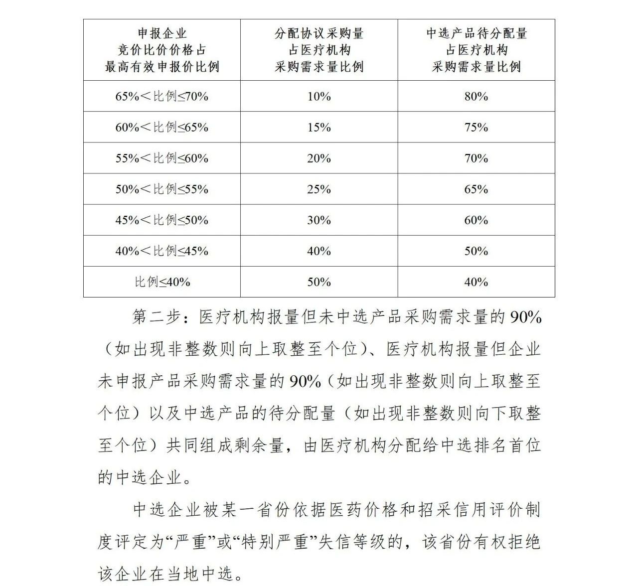 中選產品協議采購量確定規則也與第四批國采2號文保持一致,在不同的競價單元,分兩步確定每一家醫療機構每一個中選產品的協議采購量。