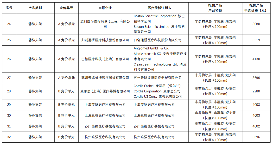 下肢動(dòng)脈支架:庫(kù)克醫(yī)療、維芮安醫(yī)療通過(guò)規(guī)則二中選,巴德醫(yī)療、波科、先鋒科技、心脈醫(yī)療通過(guò)規(guī)則三中選;非下肢動(dòng)脈支架:巴德醫(yī)療通過(guò)規(guī)則二中選,波科、心脈醫(yī)療通過(guò)規(guī)則三中選;靜脈支架:藍(lán)脈醫(yī)療、恩盛醫(yī)療、茵絡(luò)醫(yī)療通過(guò)規(guī)則二中選,天鴻盛捷、唯強(qiáng)醫(yī)療、安泰生物規(guī)則三中選。