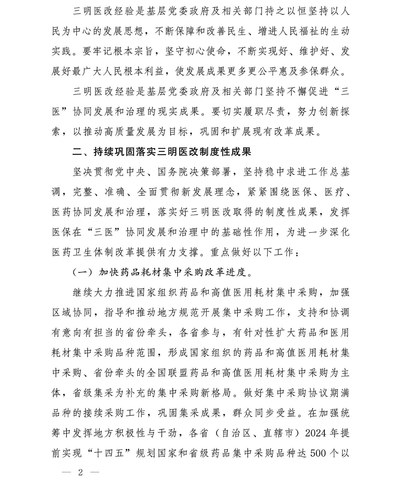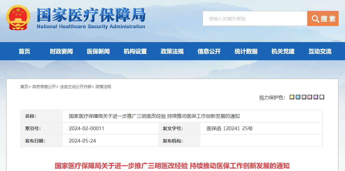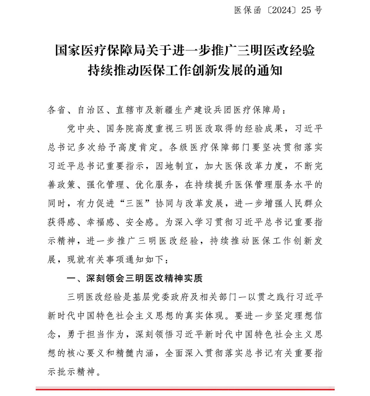 5月24日,國家醫(yī)保局發(fā)布《關(guān)于進一步推廣三明醫(yī)改經(jīng)驗 持續(xù)推動醫(yī)保工作創(chuàng)新發(fā)展的通知》(簡稱《通知》)(完整附文末),涉及集采、基層醫(yī)療、醫(yī)保支付等多項內(nèi)容。