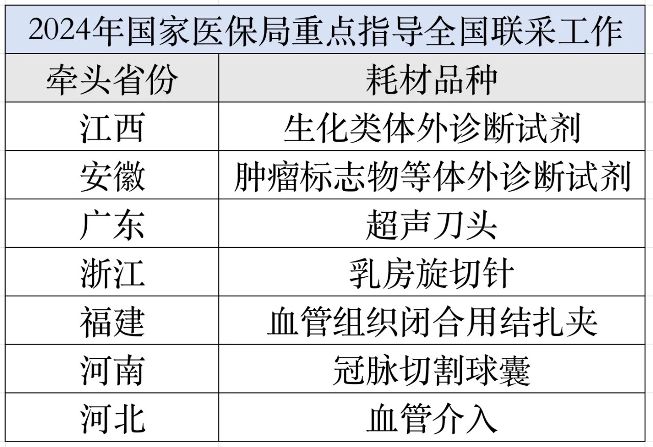 國家醫(yī)保局在此前文件中明確,條件具備的提升為全國性聯(lián)盟采購,并公布了將重點指導的七大耗材品種,具體如下: