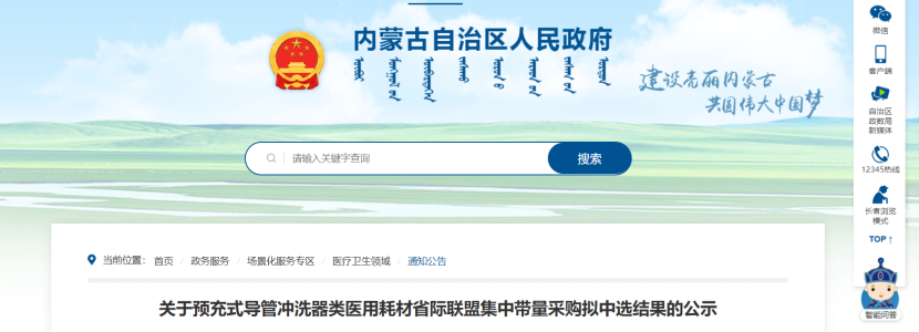11月21日,內蒙古醫保局發布《關于預充式導管沖洗器類醫用耗材省際聯盟集中帶量采購擬中選結果的公示》。