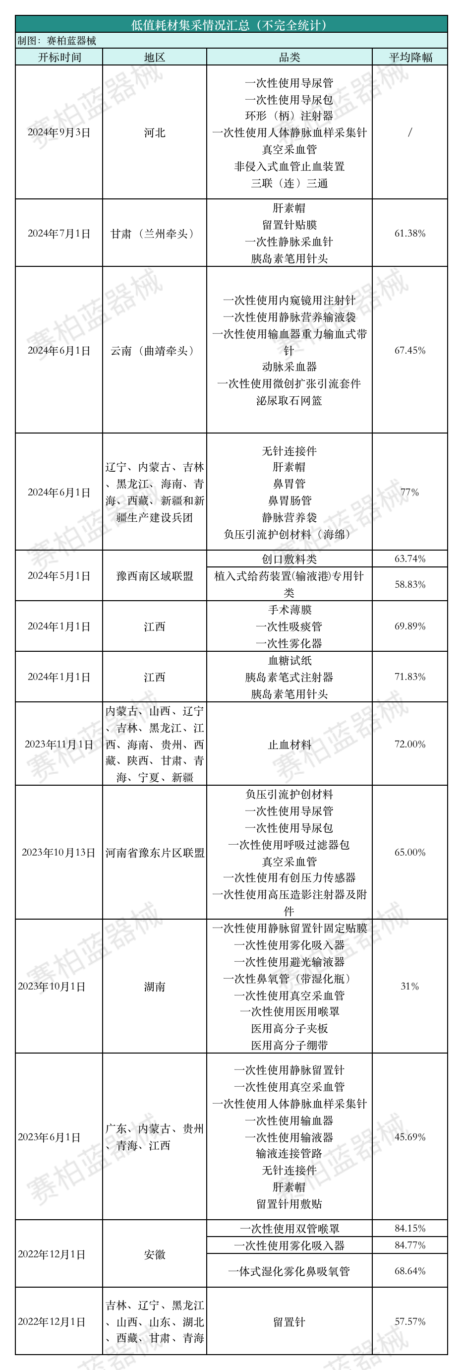 上述兩類耗材均屬單價低、用量大的低值耗材,近年來從大型省際聯盟到地方上的醫院聯合采購均將其視為集采重點對象。