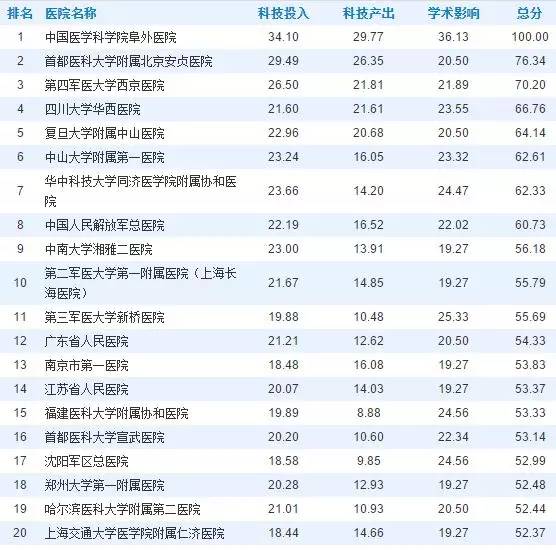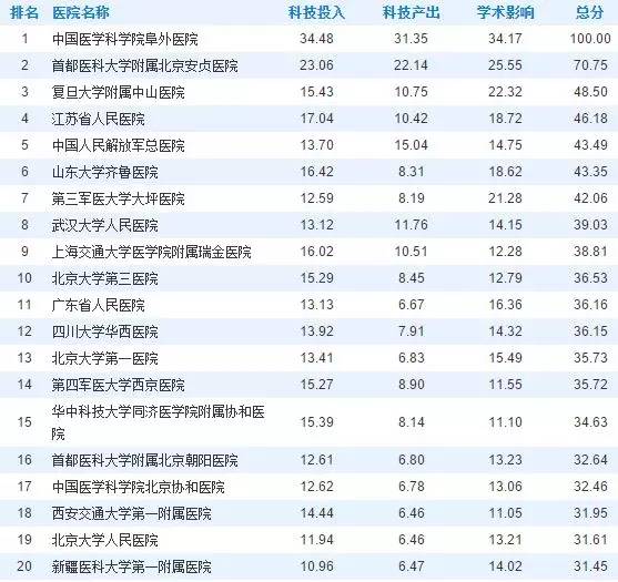 2015年,中國醫院科技影響力評價以全國1324家三級醫院為評價對象,以國家標準《學科分類與代碼》為分類依據,學科范圍為該標準“臨床醫學”下的二級類目,以及“內科學”和“外科學”兩個二級類目下的三級類目,針對醫院的25個學科開展科技影響力評價。