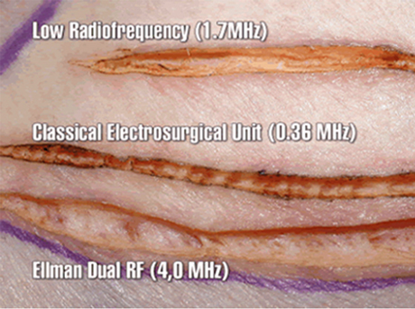 Ellman 雙頻射頻機與電刀激光刀工作原理的對比: