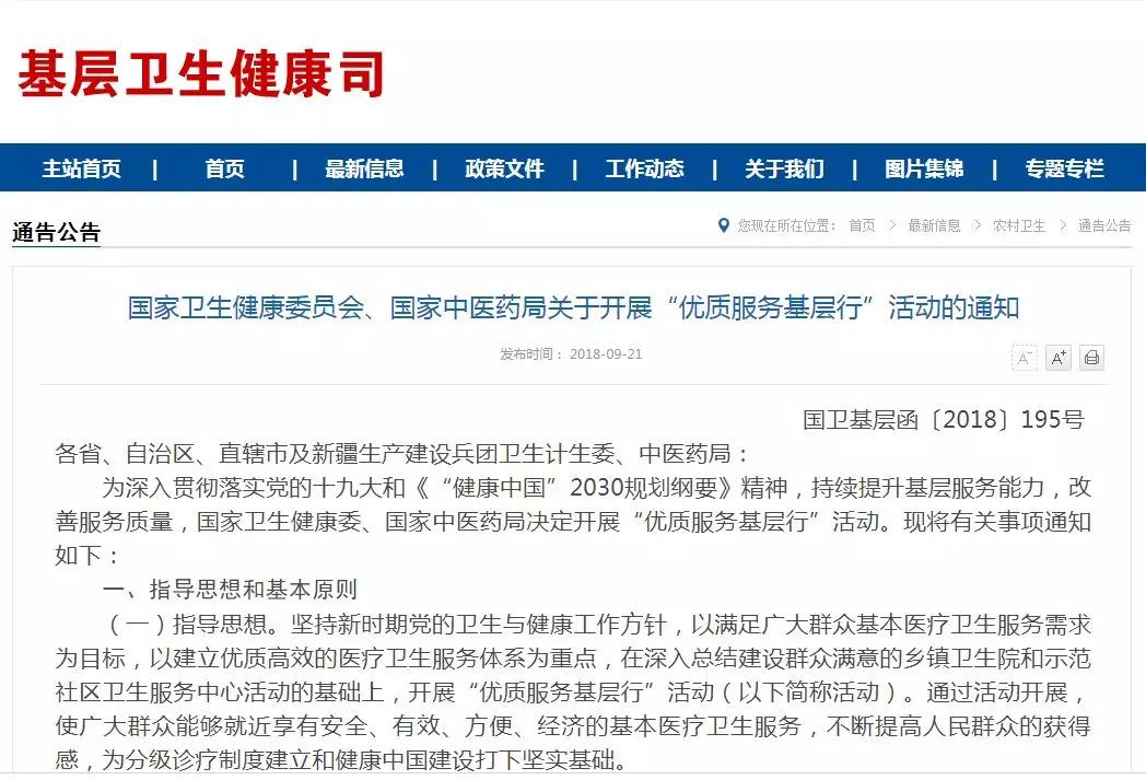 除此之外,《通知》還明確:國家衛生健康委適時對在活動中表現突出的鄉鎮衛生院和社區衛生服務中心進行通報表揚。達到推薦標準的鄉鎮衛生院,符合相關條件的可參加二級醫院評審,進一步加強醫療質量管理。