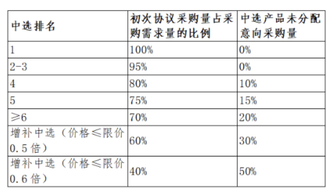 征求意見稿的擬中選規則二為采取適當方式,促進更多企業中選,且不受中選企業數量限制,其擬中選排名位列按“擬中選規則一”中選企業之后。