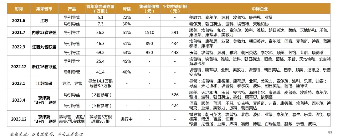 冠脈介入為耗材集采最先探索的領(lǐng)域之一,近些年導(dǎo)引導(dǎo)管、導(dǎo)引導(dǎo)絲均已經(jīng)過(guò)多輪價(jià)格洗禮。