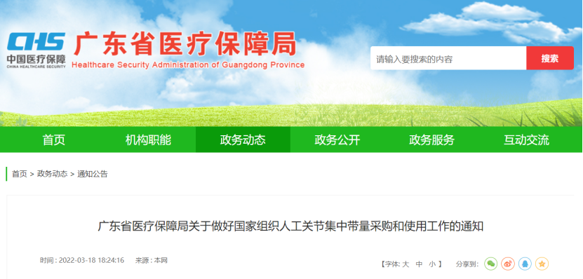 近日,廣東省醫保局發布《關于做好國家組織人工關節集中帶量采購和使用工作的通知》,明確人工關節集采中選結果執行時間。