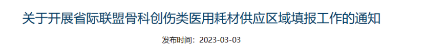 《通知》要求,為做好省際聯盟骨科創傷類醫用耗材集中帶量采購、京津冀“3+N”聯盟關節用骨水泥類醫用耗材集中帶量采購,現開展供應區域填報工作,填報時間為2023年3月3日9:00至3月4日17:00。
