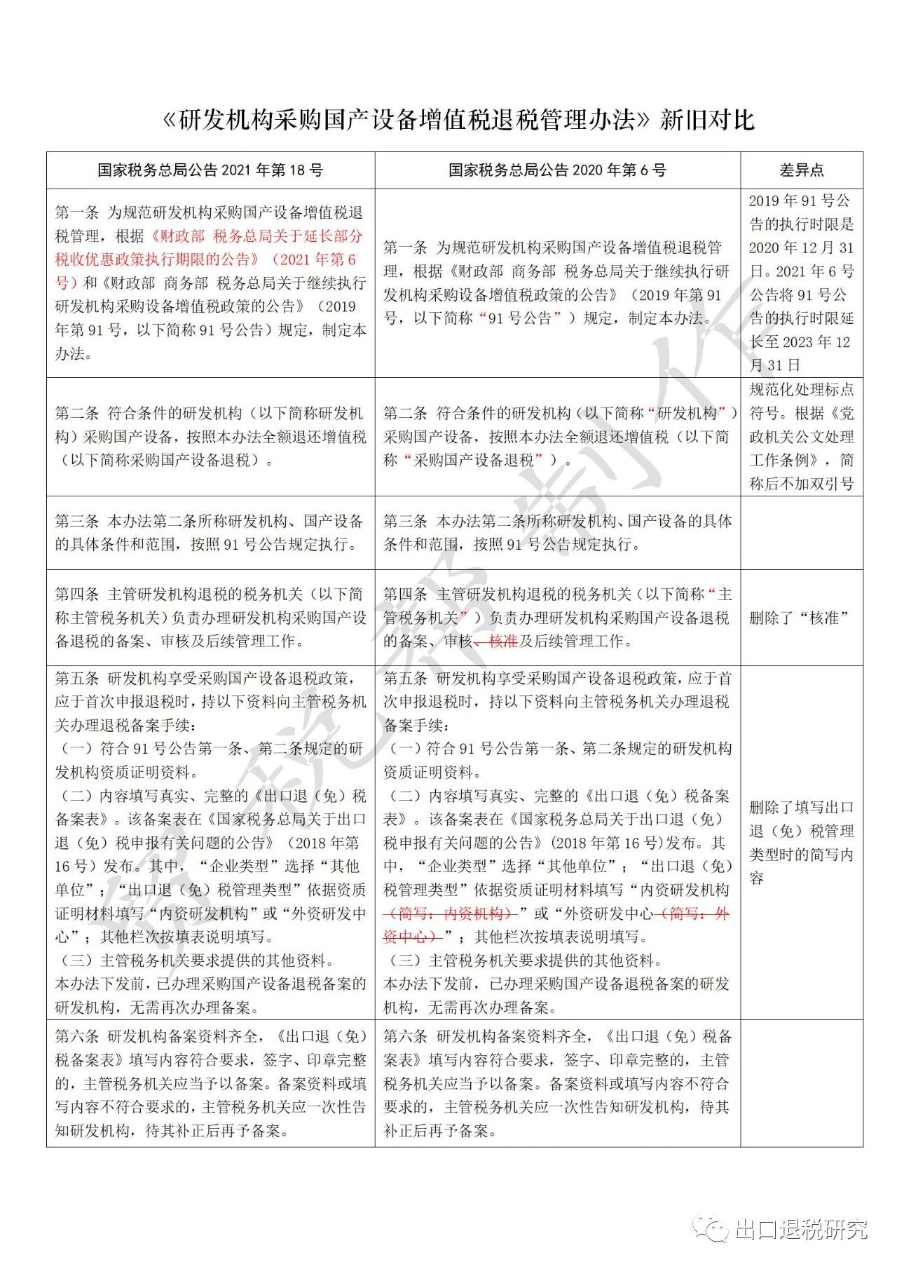 經國務院批準,財政部會同商務部和稅務總局發布了91號公告,明確自2019年1月1日至2020年12月31日,繼續對研發機構(包括內資研發機構和外資研發中心)采購國產設備全額退還增值稅,并規定具體退稅管理辦法由稅務總局會同財政部制定。為落實91號公告,便于研發機構辦理采購國產設備退稅,經商財政部,稅務總局出臺了《國家稅務總局關于發布<研發機構采購國產設備增值稅退稅管理辦法>的公告》(2020年第6號,以下簡稱總局6號公告)。2021年3月,經國務院批準,財政部會同我局發布了財稅6號公告,明確91號公告的執行期限延長至2023年12月31日。據此,我們修訂發布了《辦法》,實施期限明確為2021年1月1日至2023年12月31日。