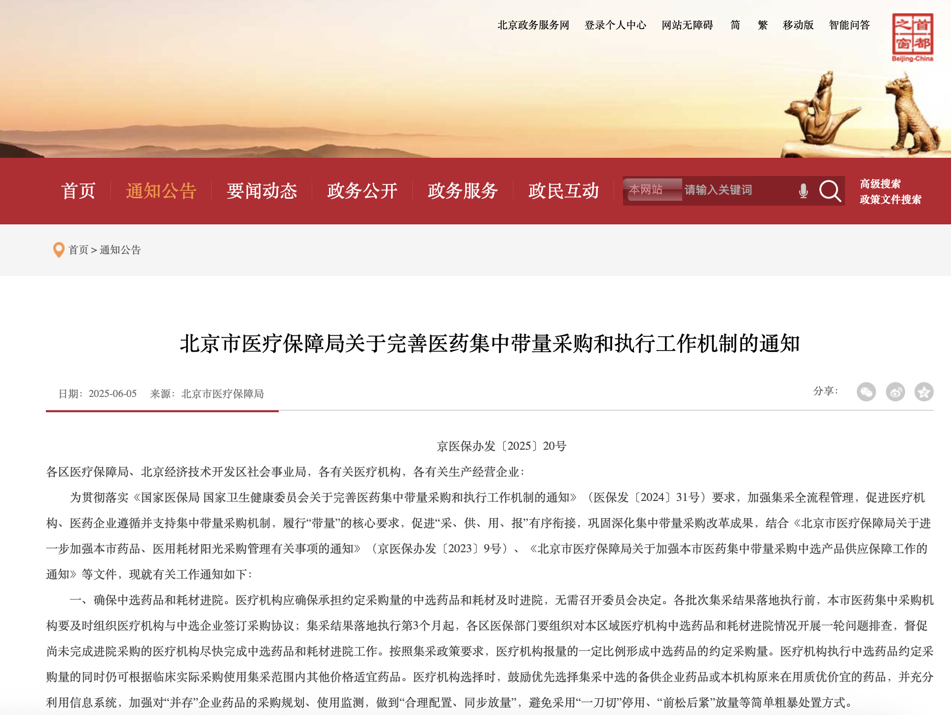 近日,北京醫保局發布《北京市醫療保障局關于完善醫藥集中帶量采購和執行工作機制的通知》(以下簡稱《通知》)(附文末)。