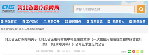 12月8日,據河北省醫保局消息,《河北省醫用耗材集中帶量采購文件(一次性使用輸液器類和靜脈留置針類)(征求意見稿)》當日發布,內容的核心為進一步降低醫用耗材虛高價格,規范醫療服務行為,保障臨床需求,減輕群眾就醫負擔。