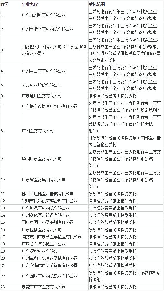 今年3月24日,廣東省食藥監局公布了“第三方醫療器械現代物流試點企業名單”,共有23家醫療器械配送商入選。廣東公布的名單用的是“試點企業名單”,但試點名單是否就全部包括了獲得第三方配送資格的配送商名單呢?