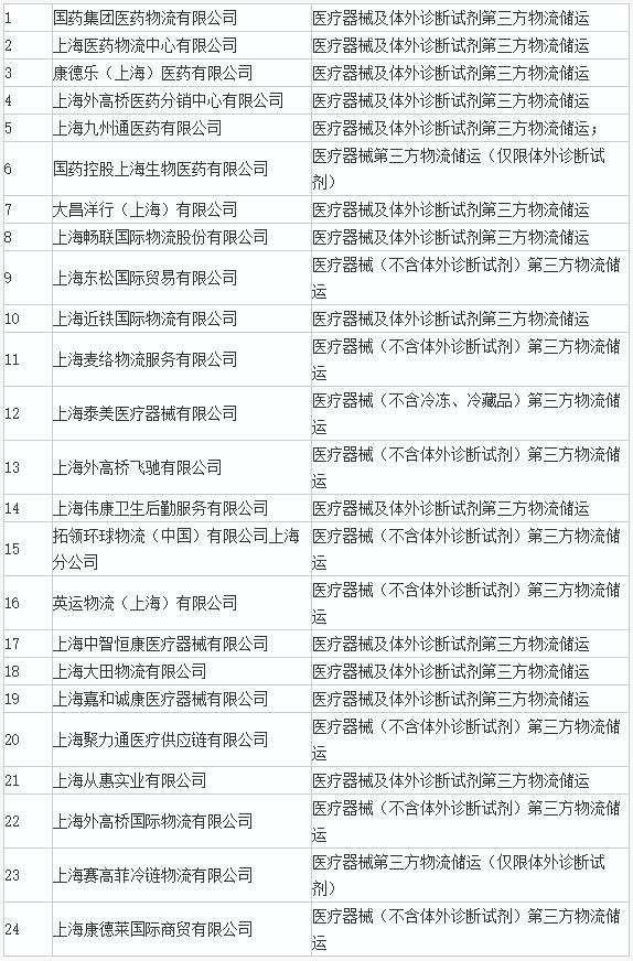 去年6月27日,上海食藥監局公布了“為其他藥品經營企業、醫療器械生產經營企業提供貯存、配送服務企業名單(2016年6月27日)”共有24家醫療器械經營企業獲得第三方配送醫療器械的資格。