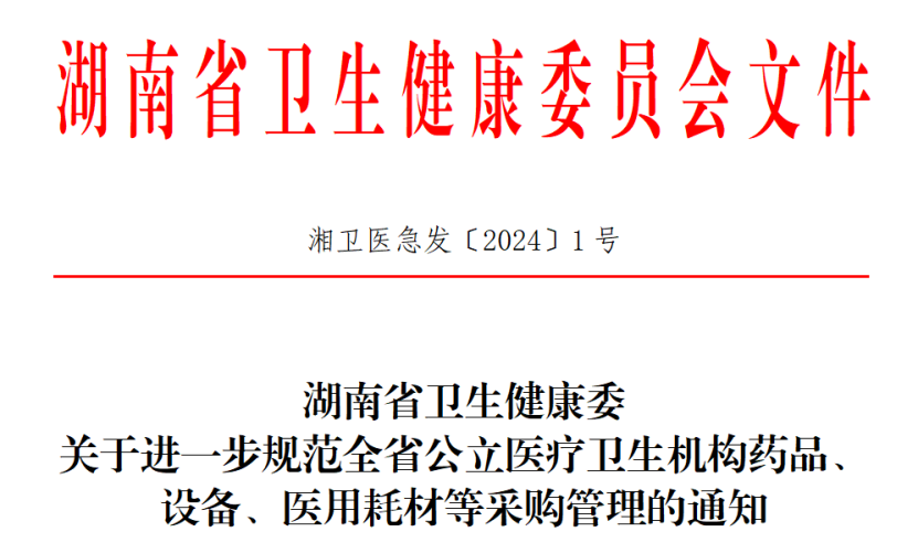 4月8日,湖南省衛(wèi)健委發(fā)布《湖南省衛(wèi)生健康委關于進一步規(guī)范全省公立醫(yī)療衛(wèi)生機構(gòu)藥品、設備、醫(yī)用耗材等采購管理的通知》(全文附文末)。