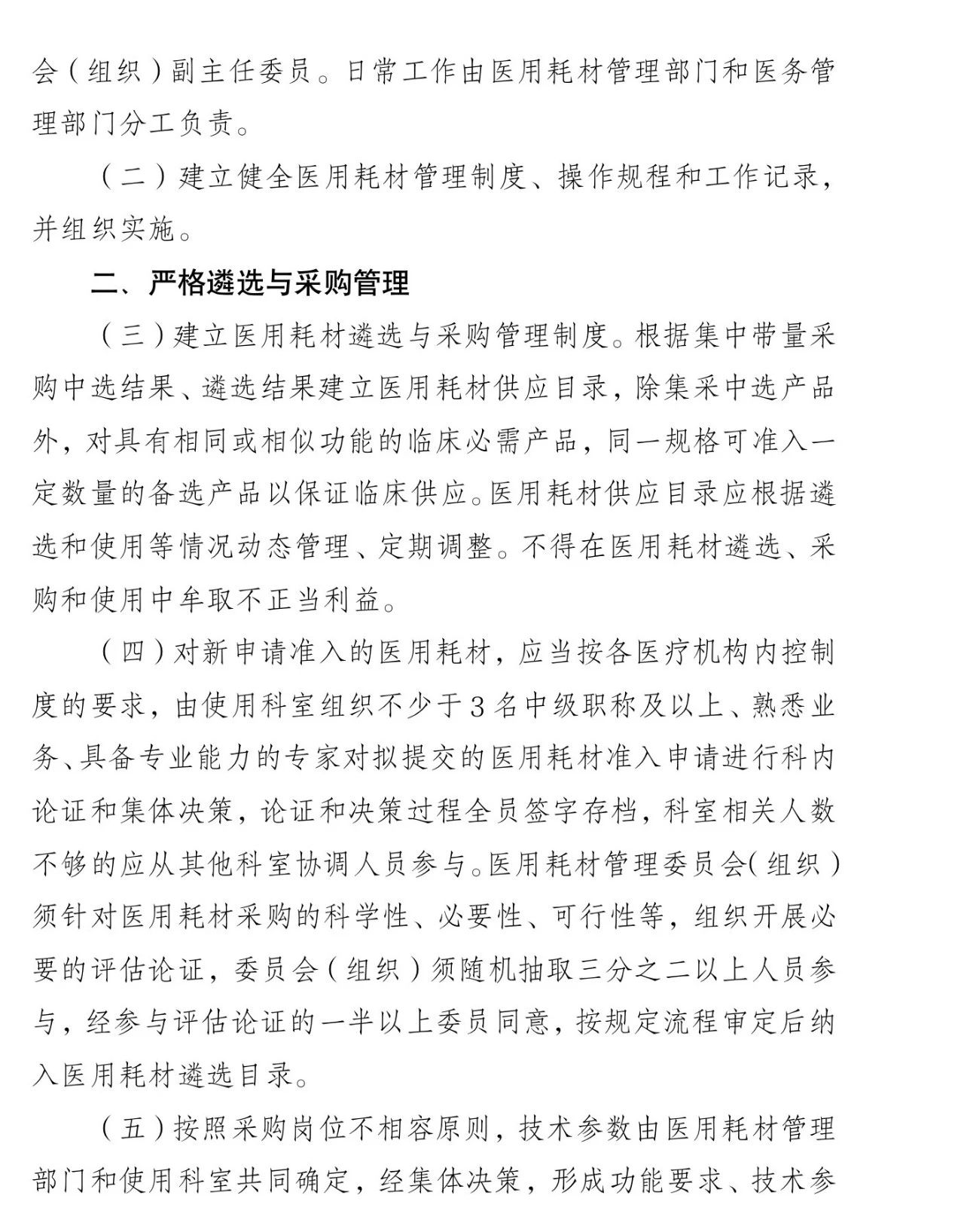 耗材采購方面,《指導意見》明確,建立醫(yī)用耗材遴選與采購管理制度。醫(yī)用耗材供應目錄應根據(jù)遴選和使用等情況動態(tài)管理、定期調(diào)整。優(yōu)先選用帶量集采中選和政府集中采購入圍目錄醫(yī)用耗材。