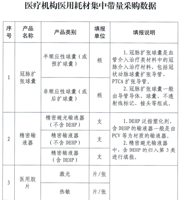 要求全省各級公立醫療機構等按要求填報,鼓勵醫保定點社會辦醫療機構自愿填報,具體涉及冠脈擴張球囊、精密輸液器、醫用膠片三大類耗材。