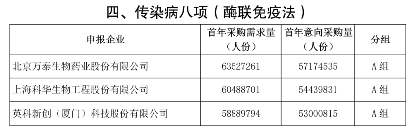 此前,《二十五省(區(qū)、兵團(tuán))2023 年體外診斷試劑省際聯(lián)盟集中帶量采購(gòu)公告(第3號(hào))》中已經(jīng)公布了申報(bào)企業(yè)首年采購(gòu)需求量、首年意向采購(gòu)量及分組情況。