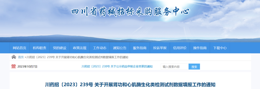 近日,四川、湖北、內蒙古、山西等多省發布通知,根據腎功和心肌酶生化類檢測試劑省際聯盟集中帶量采購工作領導小組《關于開展腎功和心肌酶生化類檢測試劑數據填報工作的通知》(〔2023〕4號)要求,組織開展腎功和心肌酶生化類檢測試劑數據填報工作。