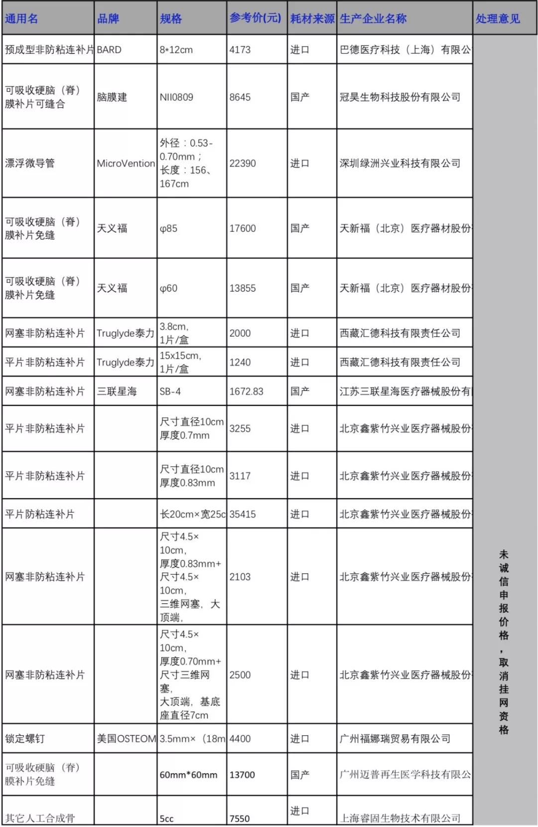 上海睿固生物技術有限公司的5款“其它人工合成骨”產品,報價從2460元至10050元不等,均被處理為未誠信申報價格。