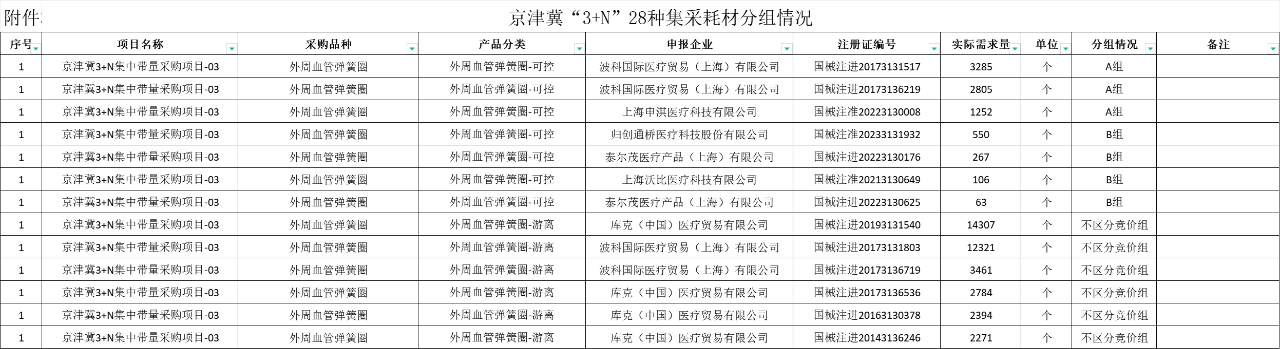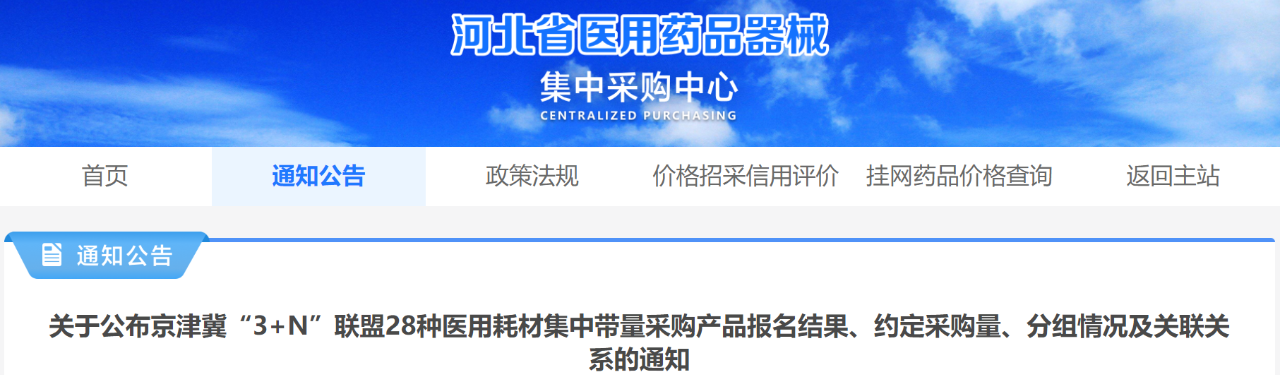 1月23日,河北省醫(yī)用藥品器械集中采購中心發(fā)布《關于公布京津冀“3+N”聯(lián)盟28種醫(yī)用耗材集中帶量采購產品報名結果、約定采購量、分組情況及關聯(lián)關系的通知》、《關于開展京津冀“3+N”聯(lián)盟28種集中帶量采購醫(yī)用耗材報價工作的通知》。