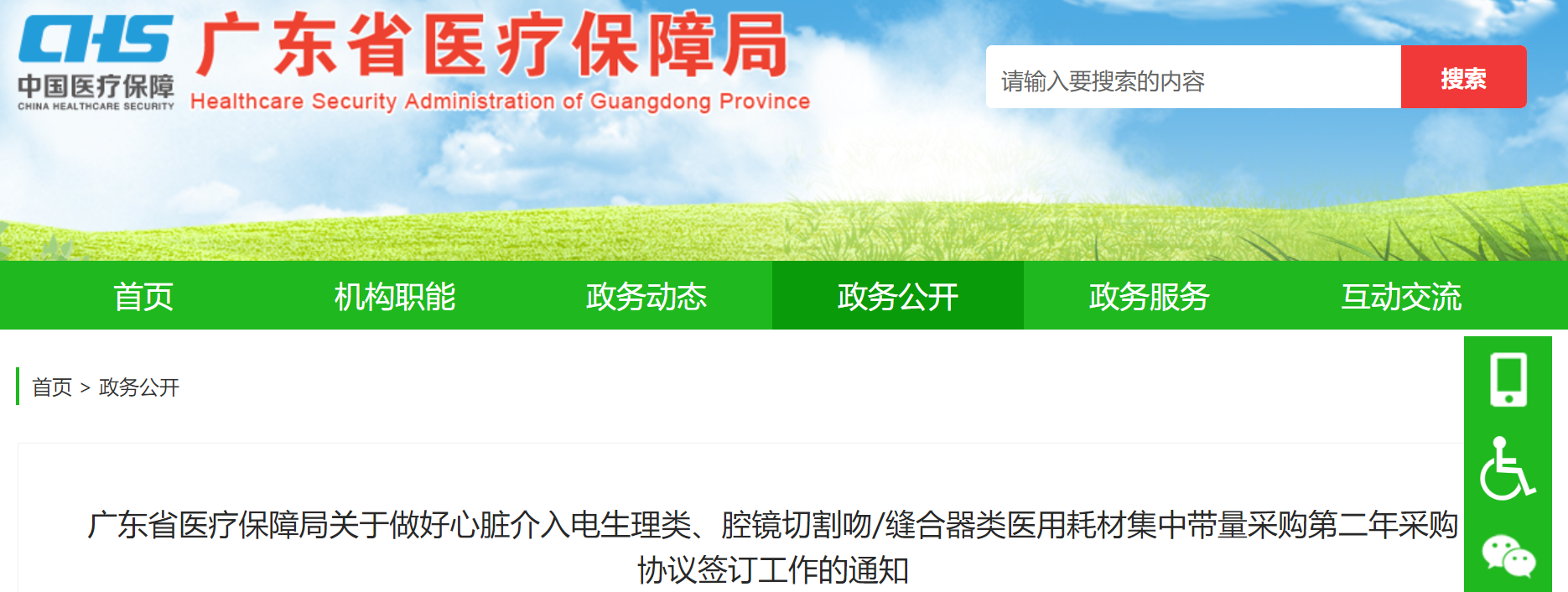 6月26日,廣東省醫保局發布《關于做好心臟介入電生理類、腔鏡切割吻/縫合器類醫用耗材集中帶量采購第二年采購協議簽訂工作的通知》(簡稱《通知》)。