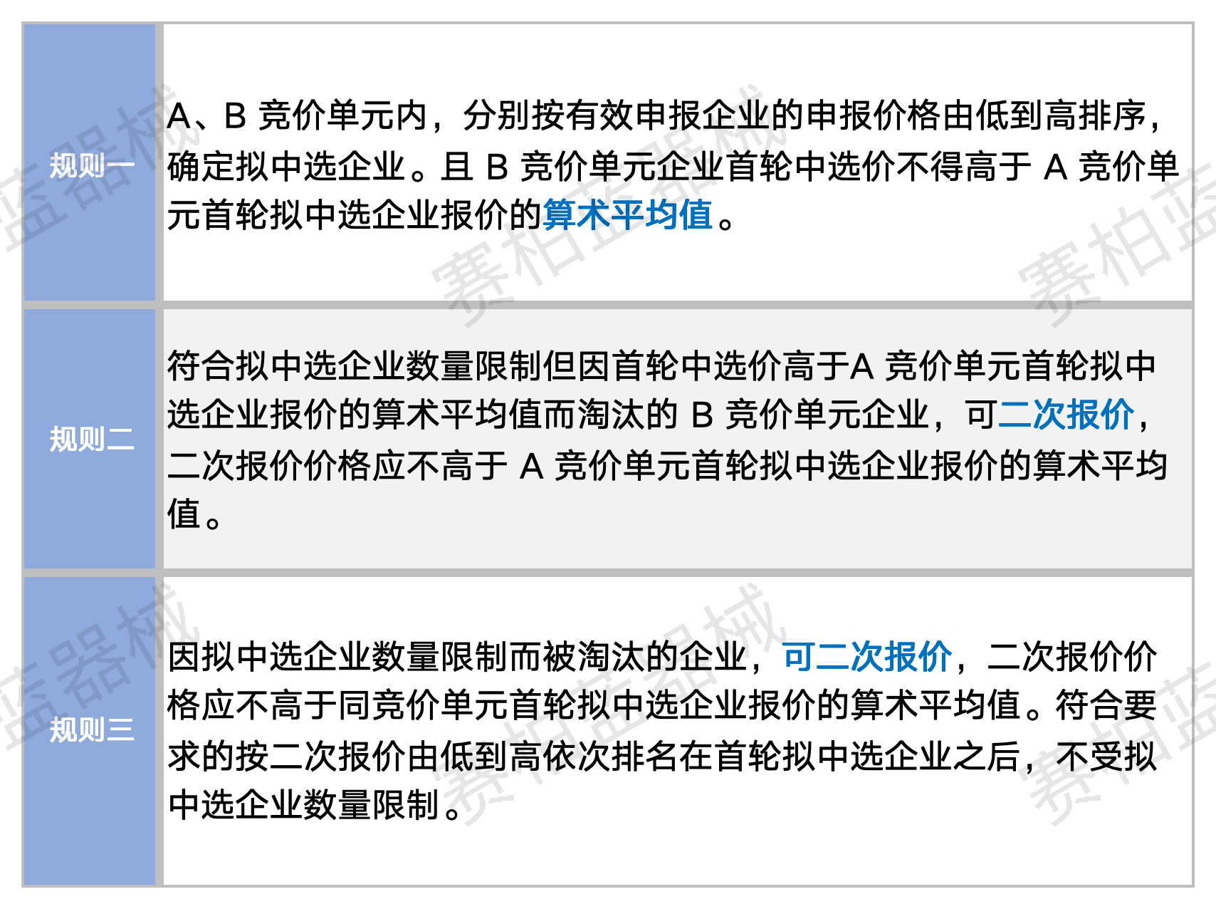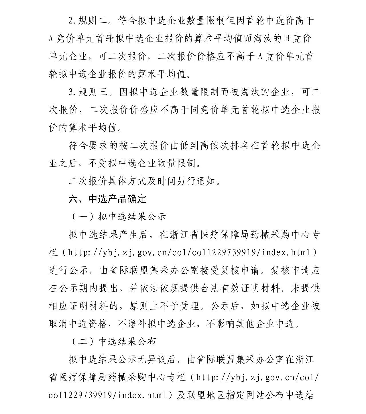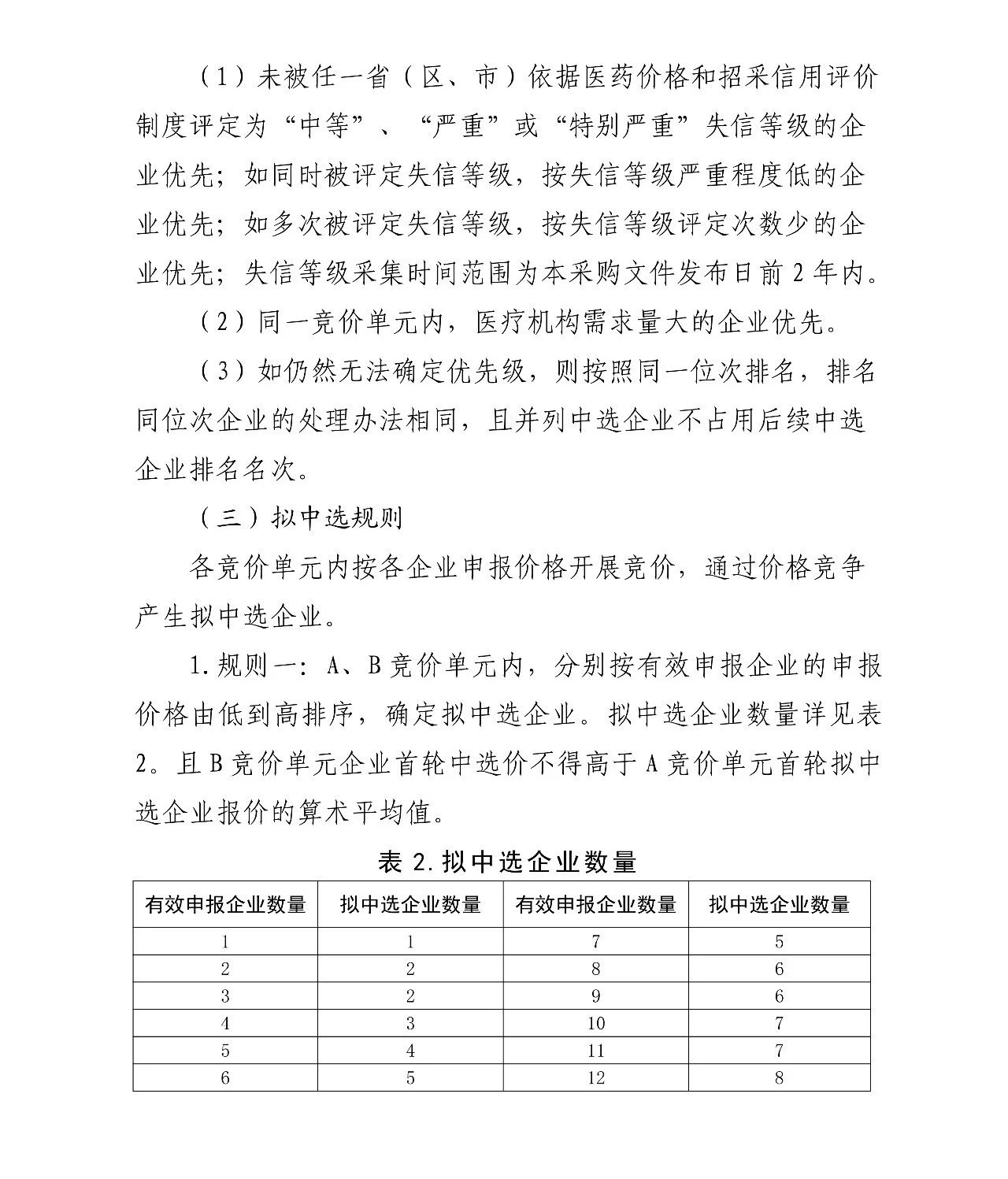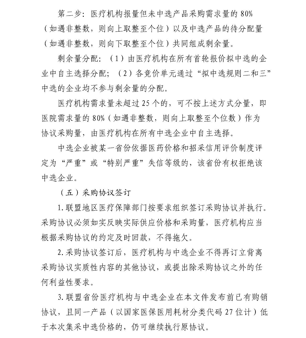 剩余量分配:(1)由醫(yī)療機構(gòu)在所有首輪報價擬中選的企業(yè)中自主選擇分配;(2)各競價單元通過“擬中選規(guī)則二和三”中選的企業(yè)均不參與剩余量的分配。