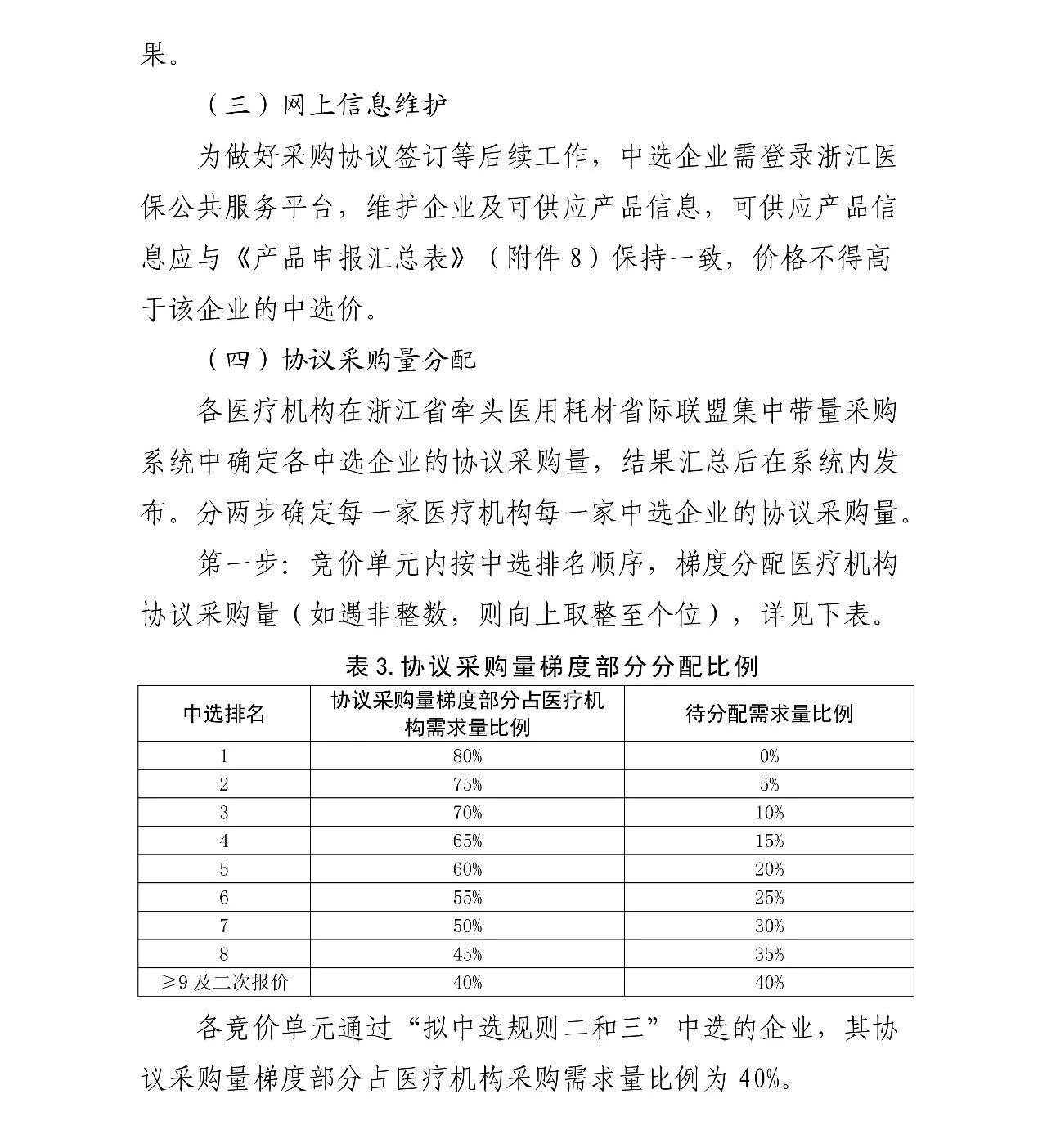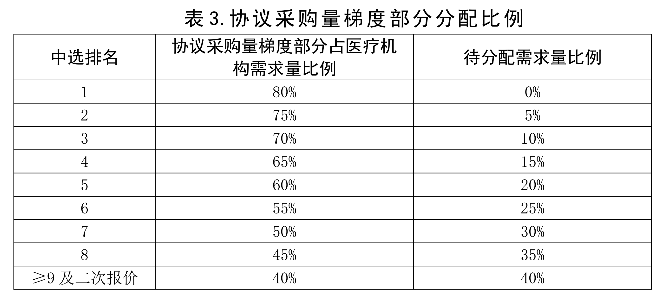 各競價單元通過“擬中選規(guī)則二和三”中選的企業(yè),其協(xié)議采購量梯度部分占醫(yī)療機構(gòu)采購需求量比例為 40%。