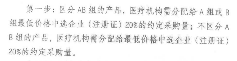 此次28種耗材集采明確提出,醫療機構需分配給最低價格中選企業(注冊證)20%的約定采購量。