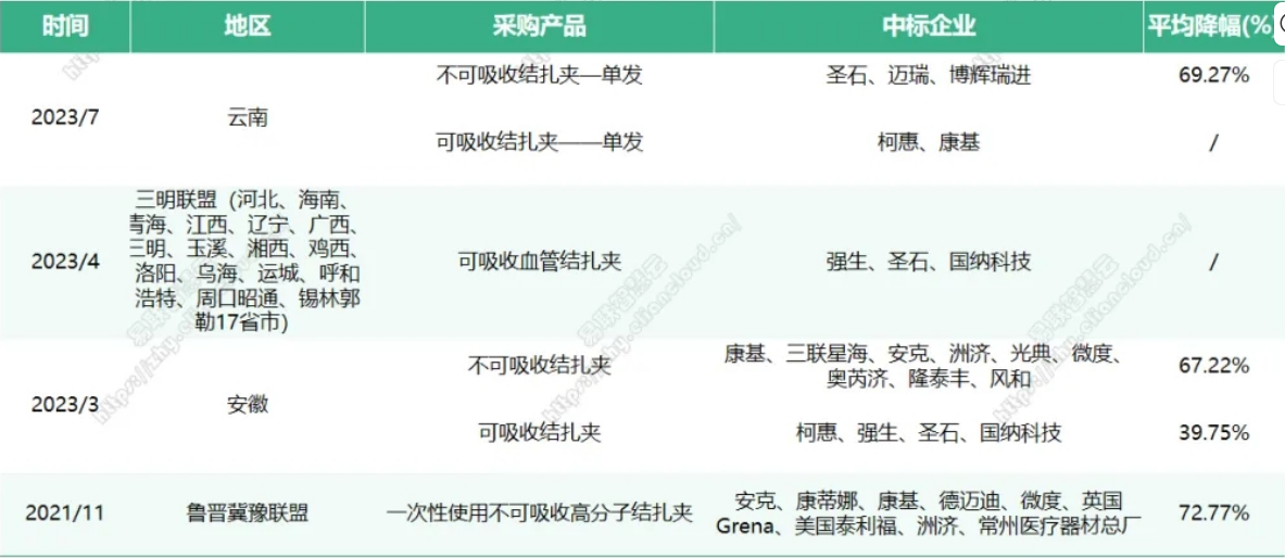 此前國家醫保局明確發文,2024年將重點指導7大全國聯采工作,福建牽頭的結扎夾集采為其中之一。